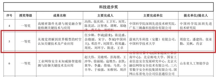 由中国科学技术大学教授任少卿、蔚来 CEO 李斌等作为主要完成人的科研成果「从视觉理解到世界模型的时空认知关键技术及产业应用」,获得科技进步奖一等奖。