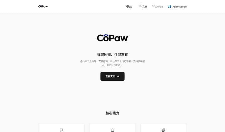 📖 官方文档:https://copaw.agentscope.io/docs/quickstart/