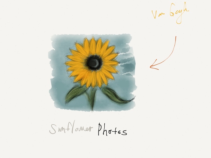向日葵在艺术领域里,它的忠实粉丝来自 19 世纪一位荷兰杰出的印象派画家—梵高,我相信这个名字很多人并不陌生,梵高一生在潦倒中度过,但倔强执着的性格使这位只活了37岁的画家,生前不厌其烦的反复创作各种不同大小外观尺寸的向日葵。我无法得知 Apple 在设计 Photos 时是否完全借鉴了梵高的向日葵,但这让更多的人更进一步了解到 Apple 设计背后的人文内涵。