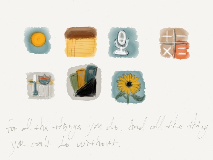 深蓝的天空下、在一道微笑曲线的高光滑过下,永远绽放着一朵金黄色的向日葵,这就是 Apple 的 Photos 给我的印象。为什么 Apple 会选用一个植物作为图片 app 的 logo?而通常的做法是设计选取一副漂亮的矢量风景山水图,这让我想起《乔布斯传》里,乔尼在乔布斯家做客时,受后花园种满向日葵的启发设计了那台漂亮得让人忍不住想去舔的 iMac,乔尼是否把 iMac 设计的灵感运用到 Photos上无从得知,但作为自然界太阳的象征,向日葵代表着乐观与阳光,这跟 Apple 制作的所有宣传中永远都会有一张幸福的笑脸出现在每一个角落的拍摄理念完全一致。