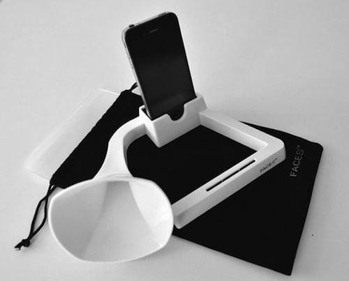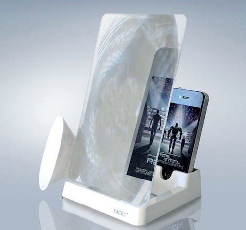 初看 Tiny Cinema,还以为它提供了 iPhone 4/4S 的插口,将视频传输到另外一个屏幕上。但事实并非如此,那块镜片其实是一块放大镜,通过它能看到放大过后 iPhone 屏幕。如果你用 Tiny Cinema 和 iPhone 看电影,那么随着可视面积的增大,用户能更加沉浸在电影情节当中。