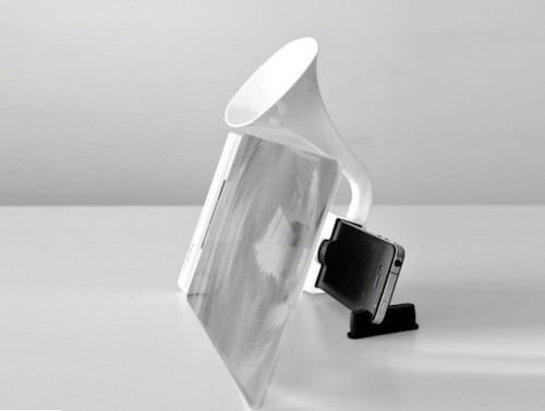 所以,Tiny Cinema 的底座并没有包含接口。它的作用,就是将 iPhone 发出的声音传导到与底座相连的喇叭中,增强声音的效果。换言之,iPhone 5 也能搭配 Tiny Cinema 使用,因为 iPhone 5 的宽度不变,仅仅是变长而已——尚不知显示效果如何。