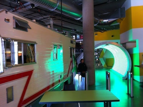 Zynga 的涂鸦墙上,随处可见音乐等艺术和娱乐元素,公司的入口也是一个巨大的圆形星光通道。公司楼外,挂着巨幅的 Zynga Dog Logo。希望这只 Zynga Dog 可以用自己灵敏的嗅觉,把公司带向正确的方向。