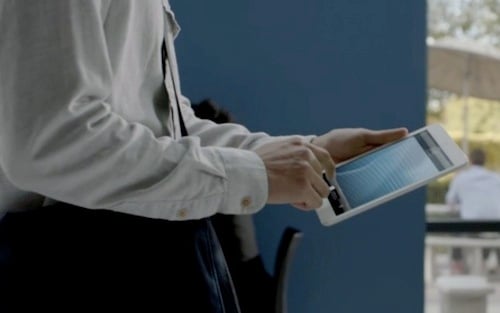 至于什么情况下才会用上苹果宣传照那般不舒服的握姿?就是有人站在你对面,而你又向他展示平板的时候。