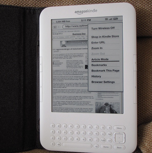 狂热的 Kindle 爱好者 Andrys Basten 拿到 Kindle 3 以后拍了一组对比照片,展现了对比度、网页排版的改善以及浏览器的“文章”阅读功能。