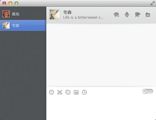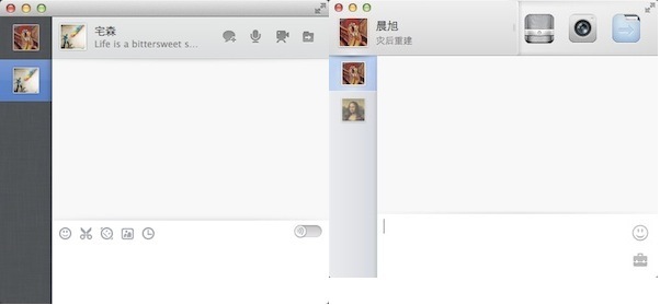 几年前,国内的苹果族还依靠一款叫“鸭子”软件与别人聊天,最近一段时间 Mac QQ 则成为苹果机上必装软件之一。Mac QQ 的界面比较清爽,去年 2 月加入了“集成式会话窗口”功能,后来 PC 版 QQ 今年 3 月有所借鉴。