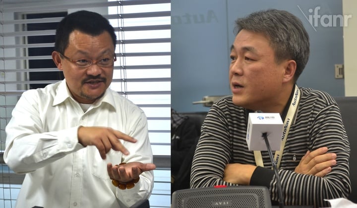 (左为高德数据生产基地总经理易雪峰,右为高德联合创始人姜德荣)