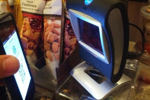 你可也以通过特定店面办理的借记卡来购买,到时 Square Wallet 会生成一个二维码,届时走进店面,只要将二维码放在扫描器之前扫描一下,就能完成支付。当交易完成,你将收到一张进行确认的账单——这一过程过程与星巴克应用的差不多。