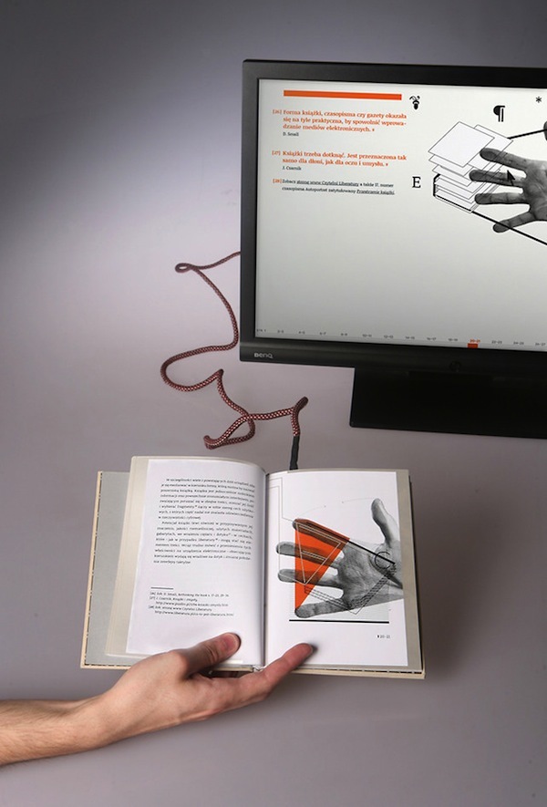 据 FastCompany 报道,卡托维兹美术学院的一名硕士生 Waldek Węgrzyn 做出了一本“混合书本”,这本书有个看起来很厉害的名字 Elektrobiblioteka——这在波兰语里是“电子图书馆”的意思。据称,灵感来自 1923 年 El Lissitzky 所发表的 Electro-Library 宣言。