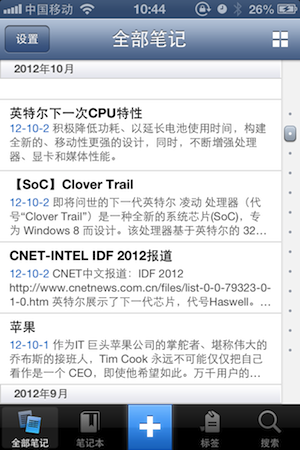 总之,新版印象笔记给人“焕然一新”的感觉,对于手机用户,它变得更加好用,输入效率更高。如果你足够敏感,你会发现新版印象笔记里面的操作变得更加简洁,新建记事基本上只要两步即可达成(记录文字,或拍照),而点击笔记本、标签查看固定类别之下的笔记,也同样只要两步。