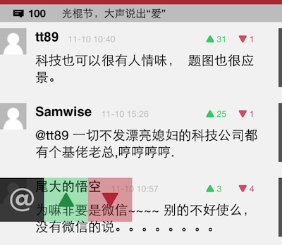 你会发现我们的 iPhone 应用引入了非常多的手势操作元素。你可以用手势在文章栏目、文章评论中切换、刷新。后续的版本,我们将增加更多符合手势操作的功能。
