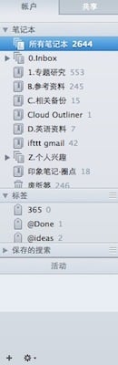 在旧版印象笔记中,左侧面板的主要构成部分是“笔记本”与“标签”——实际上是两种分类方式,被完整呈现出来,你可以点击任何一个分类,查看相关笔记。然而在 印象笔记 V5 版中,完整的分类视图被“快捷方式”所取代,它是旧版被称为“快捷列”功能的进化版。