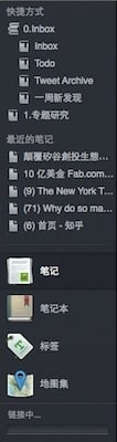 此外,由于取消完整的分类视图,也强迫你去思考笔记本、标签等分类的意义。当你将优先级更高的笔记本、标签、笔记、笔记本组放置于快捷方式中,自然会避免你操作的繁琐。