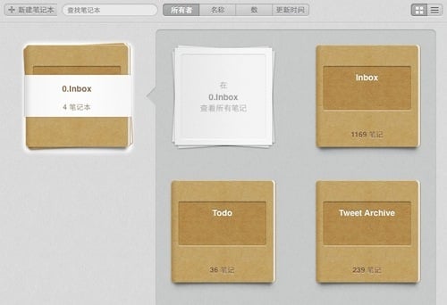 笔记本另外一个变化是,剪除了笔记本和共享笔记本之间的篱笆,两者被放在同一个容器里。而且,普通笔记本也能够和共享笔记本编制为笔记本组。不过,你仍然不能随意地将一则笔记移入别人分享的共享笔记本中,