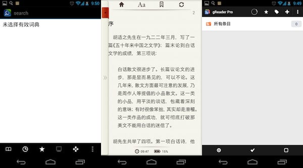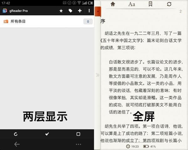 【更新】文中所展示的三个应用在 Nexus 4 原生 Android 4.1 下的表现,均为两层显示: