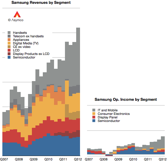 值得注意的是,三星的财务报表给出的数字是收入总额,换言之,该收入还包括了分部之间的销售收入。
