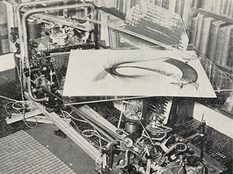 上世纪 60 年代,作为一种尝试,一些人也打算机器的自发地进行艺术创作。来自曼彻斯特大学的德斯蒙德·保罗·亨利(Desmond Paul Henry)用轰炸机上使用的“投弹瞄准器”制造了世界上第一个自我绘画的机器。“投弹瞄准器”实际上也是计算机的一种,它们通常装备在战斗机上,通过陀螺仪、电机、齿轮、望远镜,综合风向、距地面高度、航偏角、炸弹重量等复杂因素,来计算出准确的投弹点。