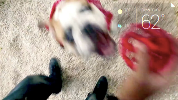 除了通过语音指令“命令” Google Glass 外,它自己本身也具备“被动性技能”,比如说,可以显示当地的天气情况,包括当前温度,最高温和最低位,还有湿度。
