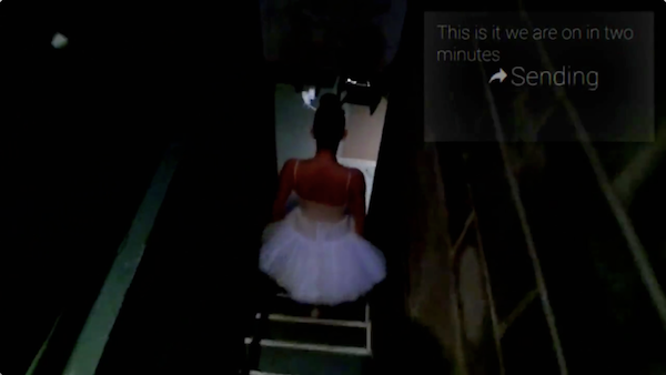 当拍照之后,Google Glass 显示出“Sending”的字样,说不定能够直接发送彩信给朋友,或者分享到社交网络上。