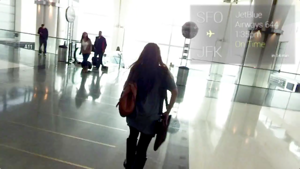 它还能按时提醒我们,要去机场登机了。——Google Glass 应该结合了 Google Now,主动向我们推送相关的信息。
