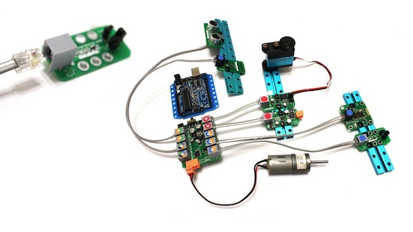 通过这样的改造,消费者能够明确了解 Arduino 上面接口的定义,以正确的方式跟各种各样的模块相连,如果想添加蓝牙模块、速度计等等,都会变得简单。在王建军的计划中,各种模块将通过普通的电话线与 Arduino 相连。