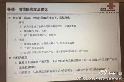 2)当前阶段,与其他运营商的竞争大于合作关系,与微信合作可以吸引异网用户。