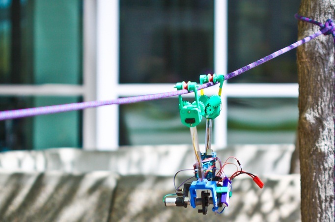 值得称道的是,SkySweeper 的主要零件采用的是时下流行的 3D 打印制造,工作的时候形体犹如大猩猩一样,两个“U”型的夹钳交替前进,这样的设计主要是用来避免被线缆中的接头部位所阻挡。