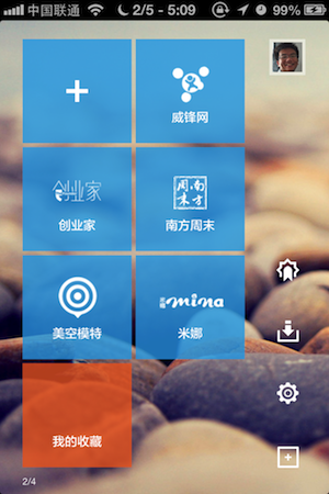先让我们来看看,ZAKER 的“好友分享”到底是怎样的:进入新版,登陆了新浪微博后,首页的右上方出现了个人头像,只要点击这个头像,就能进入到“好友分享”的界面中去。当然,你要看到“好友”分享过来的内容,首先必须先关注一两个好友才行。