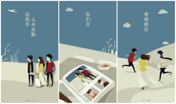 QQ 手机版内测版本的开机画面,从呆板的 QQ 2012 的标志,变为一组青春主题的图片,“这些年,从未走散。你们在,青春就在”。虽然只是开机画面的区别,但也可看出新版手机 QQ 变化的背后,开发团队思想的改变:人文关怀,工具,也有情感。