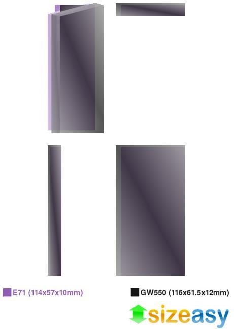 - 116 x 61.5 x 12mm (E71: 114 x 57 x 10 mm)