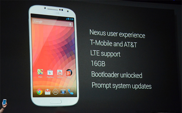 Google I/O 2013 首日 Keynote 主题演讲刚刚结束,与大家预期的不太一样,现场仅带来了一款硬件设备,是搭载原生 Android 4.2 系统的三星 S4,该机将直接在 Google Play Store 上售卖。软件方面却精彩纷呈,虽然 Google 在演讲中没有用到很多浮夸的词汇,但是现场的演示就是最好的语言。