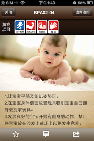 每个游戏项目,都说明对宝贝哪方面的发展有帮助,也说明了玩法