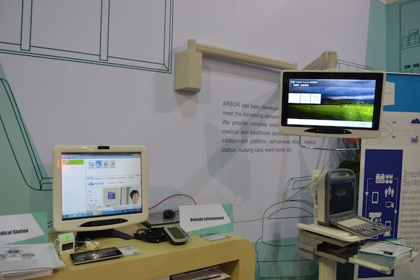 在展览馆逛着逛着,发现有一个展位以“医疗”为主题,展出了许多跟医疗相关的设备,为医院的信息化提供解决方案。这家公司叫磐仪科技(ARBOR),在嵌入式设备开发方面,已经积累了 20 年的经验。