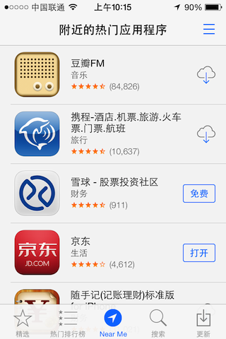 除了按钮以及底色发生了变化为,iOS 7 的 App Store 的外观与 iOS 的一样;而功能上,则轻易发现多了一个 Near Me 功能。它能够让我们发现“附近的热门应用程序”。