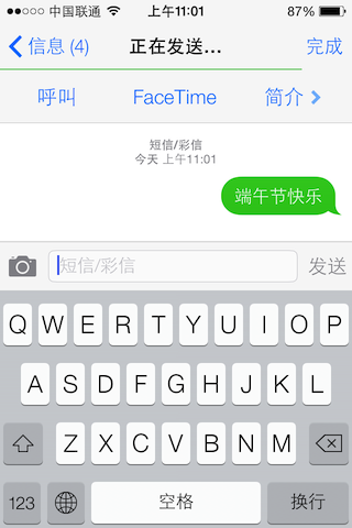 几个小细节,短信对话页面,文本框的颜色会从上至下、由浅至深渐变;另外,若短信内容中提到了“明天”、“明天晚上”等和时间有关的信息,就会出现下划线,作为提示;可惜不像内置的电子邮件,可以直接点击跳转到日历新建“约会”。