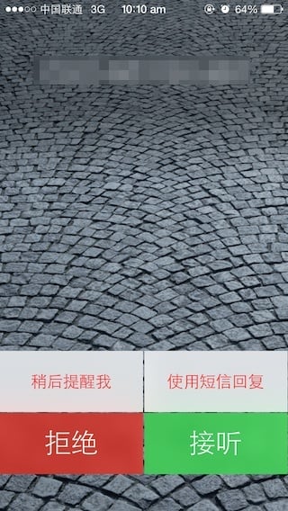 如果你接到某人的电话,你会发现,接听和挂断的按钮对的颜色对比比较强烈。现在的接听界面,不必上滑,就能选择稍后提醒还是以短信回复对方。另外,如果在锁屏状态下接到电话的时候,滑动即可接听;反之,接听界面上会直接显示“接听”或“拒绝”两个按钮。