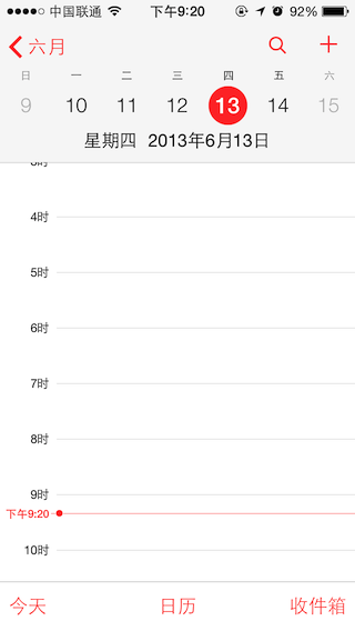 和其它应用不同,日历里的字体、小图标不是蓝色,而红色。