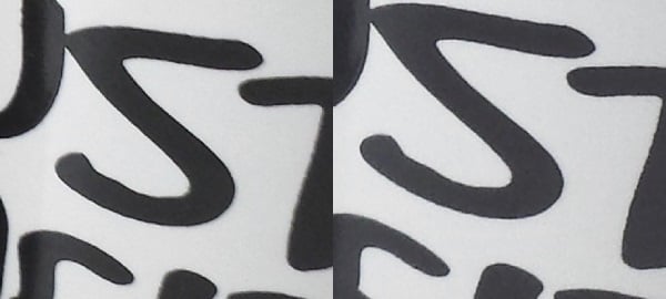 放大后能看出差别。定制 Galaxy S4 成像的锐利程度好过原生系统,后者的字迹边缘有点模糊。