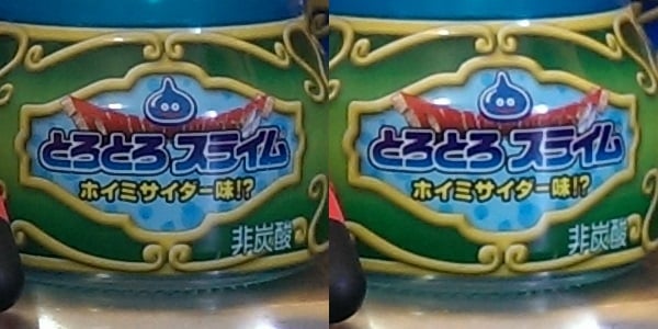 蓝色玻璃瓶放大后的效果。瓶身标签细节的区别并不明显。