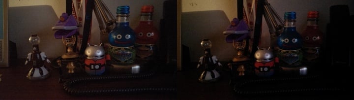 室内低光。定制系统的表现好过 Android 原生,原生系统的样片在暗光区域细节丢失严重。