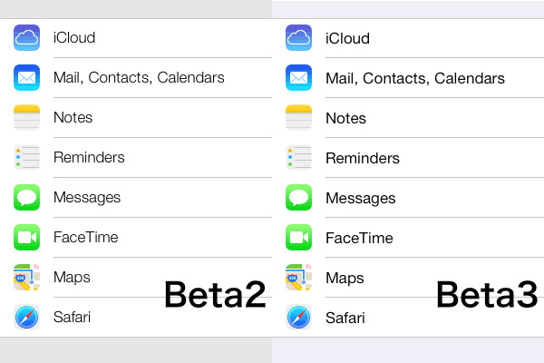 iOS 7 Beta3 今天凌晨如期放出,其中一个较为细微的可见变化是:系统字体从此前的 Helvetica Neue Light 改成了 Helvetica Neue (regular)。简单来说,就是“变粗了”。