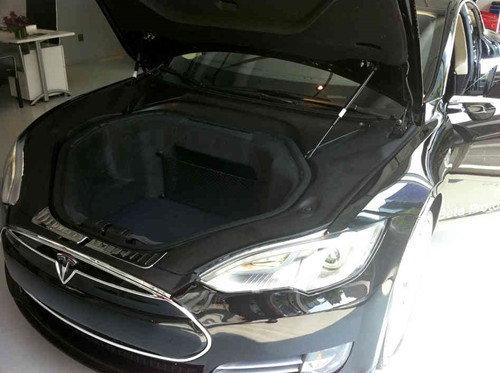 另外 Model S 的轴距为 2959mm、总长 4976mm,车身空间足以媲美大中型轿车了。另外由于是电动汽车,其车身前部因为不需要常规的内燃发动机,所以省出了很大一部分空间。其车身尾部的空间也比常规轿车大很多。