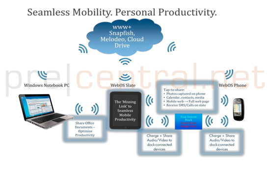 惠普希望让 webOS 成为一个连续客户端(continuous client),在一台设备上开始的工作可以在另一台设备上无缝继续。Touchstone v2 将支持“tap to send”,更多服务包括: