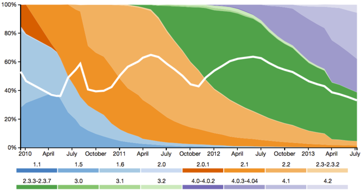 上图为 2013 年 7 月 Android 设备分裂的状况