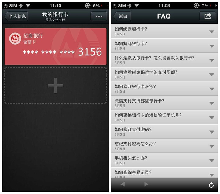 微信 5.0 新增加了“微信支付”功能,打通了线上线下。这其中可以把微信号和银行账号绑定。不过这种支付方式还有待我们继续体验,请关注我们的后续更新和文章。