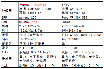 将于今年夏天上市的 TouchPad 平板就是之前曝光的 Topaz,硬件规格直奔 iPad 而来,此前公布的信息基本准确: