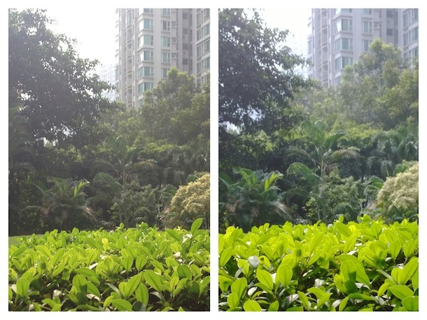 这一组则充分表现出 4100 万像素 PureView 的威力。在逆光的情况下,Lumia 1020 终于表现出优秀的光学素质,画面干净,而且得益于高分辨率,树丛的每一块树叶仍然拥有锐利的边缘,暗部也有非常丰富的细节。反观 iPhone 5,出片则像蒙上一层薄雾,暗部细节几乎殆尽。