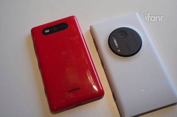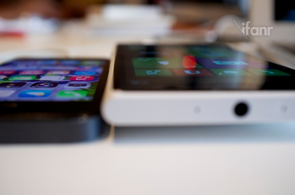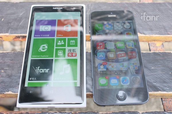 左为 iPhone 5;右为 Lumia 1020