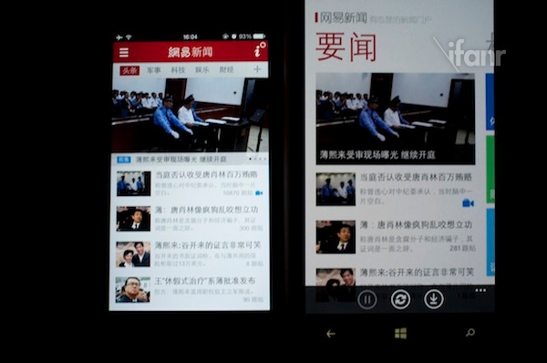 左:iPhone 5;右:Lumia 1020