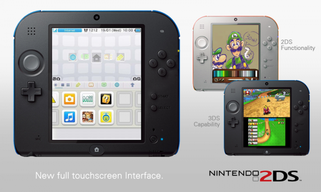 作为 DS 掌机家族的最新成员,2DS 这个名字多少让人困惑:从名字来看,这是一条全新的产品线,但它并没有专属作品,依然运行 3DS 游戏。